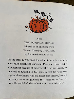 In the late 1700's the Reverend Samuel Peters (a loyalist) left the Puritan colony in Connecticut and returned to England. There, in his frustration, he wrote a General History of Connecticut full of untrue stories that were generally unflattering to the colonists that drove him out. This book, about the townsfolk of New Haven who MUST find a replacement for their "cutting cap" (a standard to cut all of the men and boys' hair to the same length), is based on one of his stories. "Pumpkin Head" hardly seems like the most derogatory thing you could call someone, but maybe in Puritan New England is was quite the insult! And the story portrays the leaders and residents as being pedantic and silly.